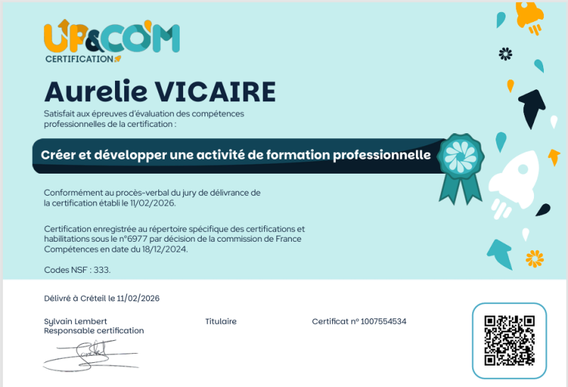 Ces formations me permettent de proposer un accompagnement structuré, adapté à différents publics et contextes.